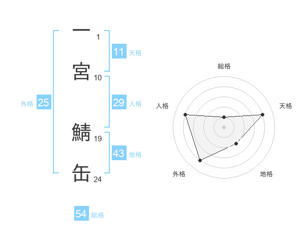 一宮 鯖缶さんを姓名の画数から五運を鑑定