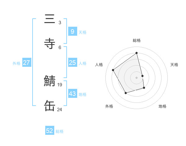 三寺 鯖缶さんを姓名の画数から五運を鑑定