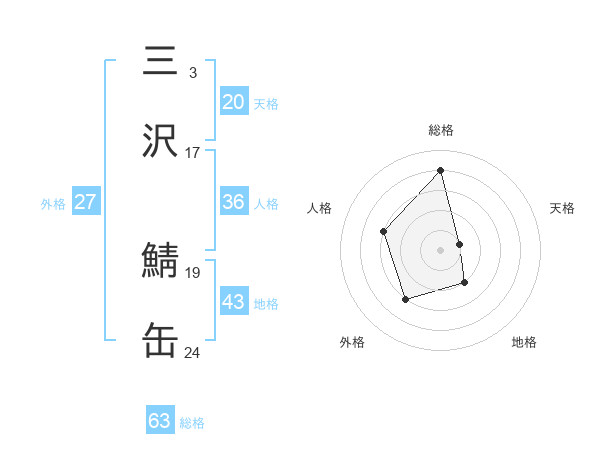三沢 鯖缶さんを姓名の画数から五運を鑑定