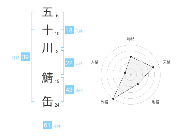 五十川 鯖缶さんを姓名の画数から五運を鑑定