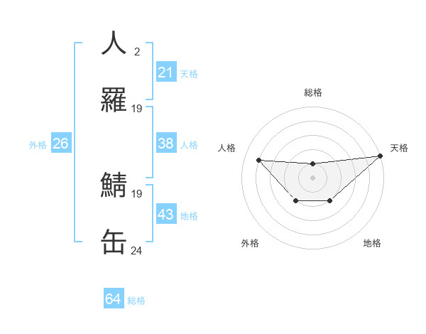 人羅 鯖缶さんの総格は64画の1点!