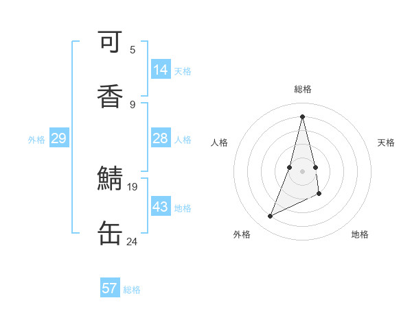 可香 鯖缶さんの総格は57画の4点!