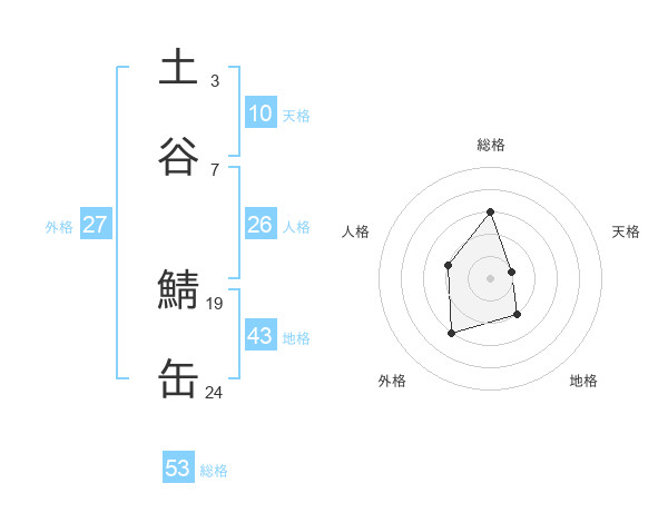 土谷 鯖缶さんを姓名の画数から五運を鑑定