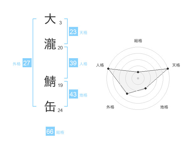 大瀧 鯖缶さんの名前の鑑定結果は!