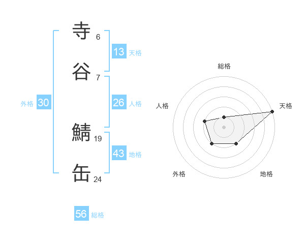 寺谷 鯖缶さんの天格は13画の5点!