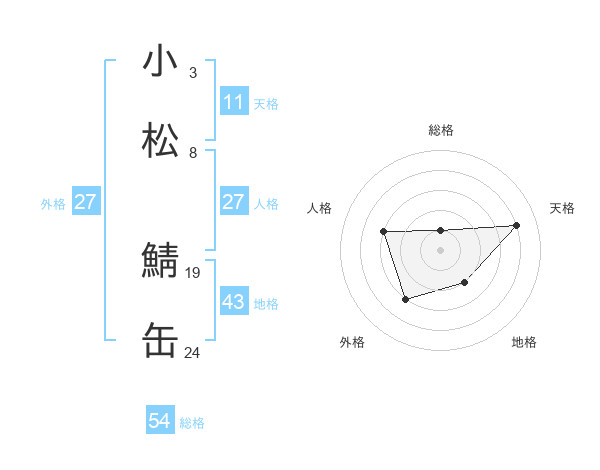 小松 鯖缶さんの天格は11画の4点!