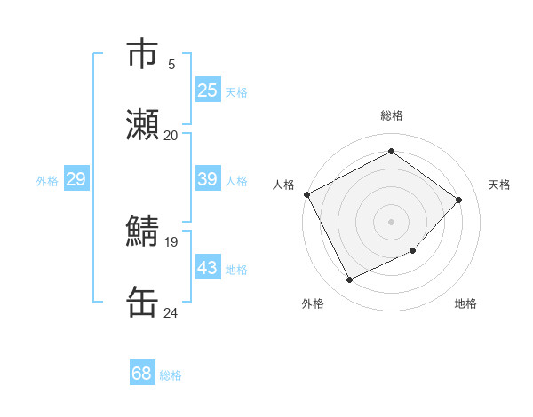 市瀬 鯖缶さんの総格は68画の4点!