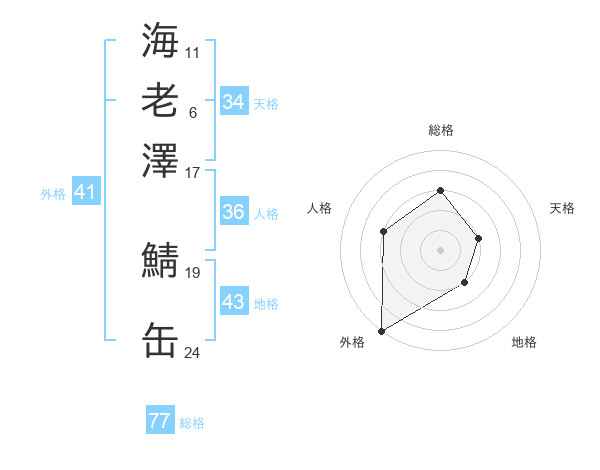 海老澤 鯖缶さんを姓名の画数から五運を鑑定