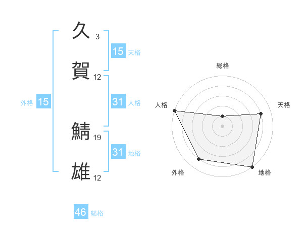久賀 鯖雄さんの総格は46画の1点!