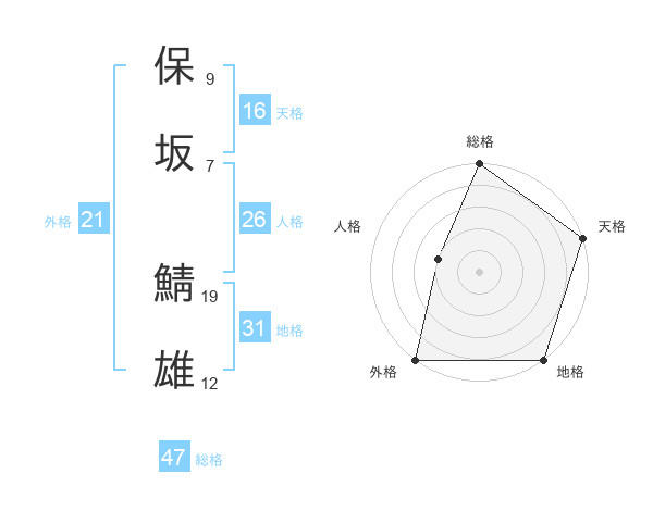 保坂 鯖雄さんを姓名の画数から五運を鑑定
