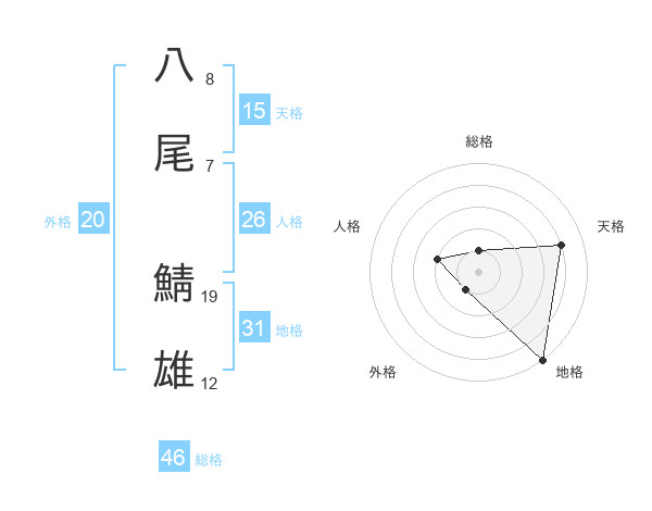 八尾 鯖雄さんを姓名の画数から五運を鑑定