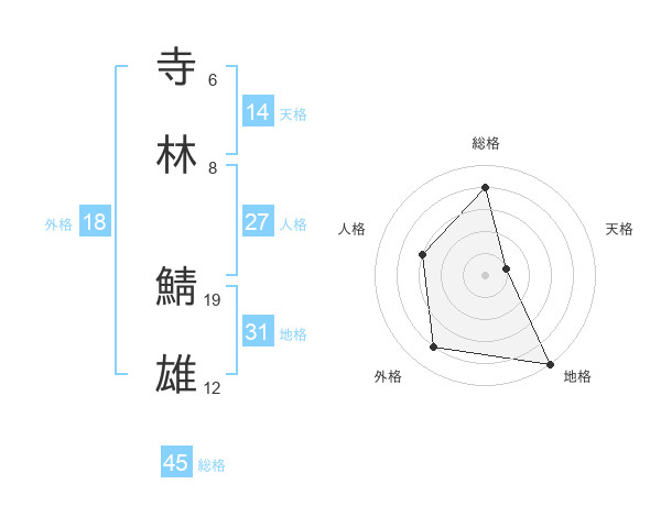寺林 鯖雄さんの総格は45画の4点!