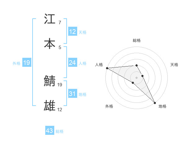 江本 鯖雄さんを姓名の画数から五運を鑑定