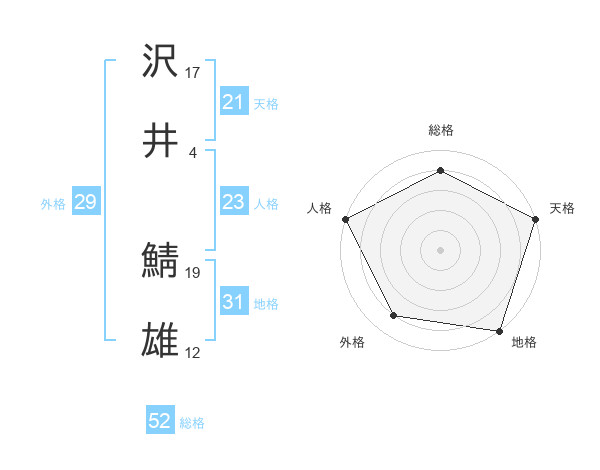 沢井 鯖雄さんの総格は52画の4点!