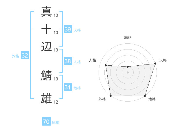 真十辺 鯖雄さんの総格は70画の1点!