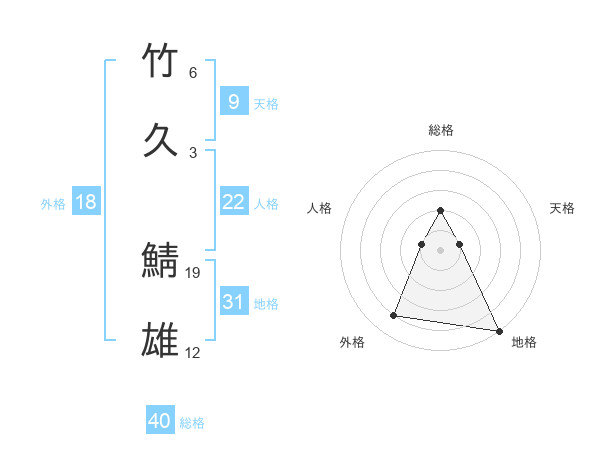 竹久 鯖雄さんの総格は40画の2点!