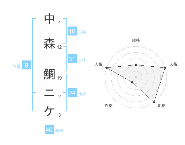 中森 鯛ニケさんの地格は24画の5点!