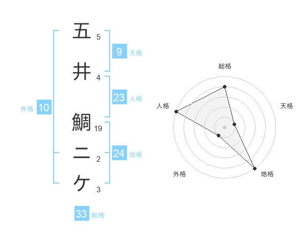 五井 鯛ニケさんを姓名の画数から五運を鑑定