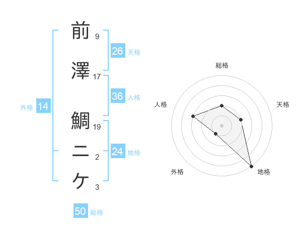 前澤 鯛ニケさんを姓名の画数から五運を鑑定