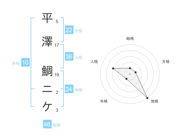 平澤 鯛ニケさんを姓名の画数から五運を鑑定