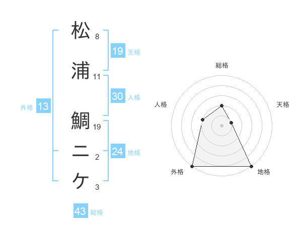松浦 鯛ニケさんの外格は13画の5点!