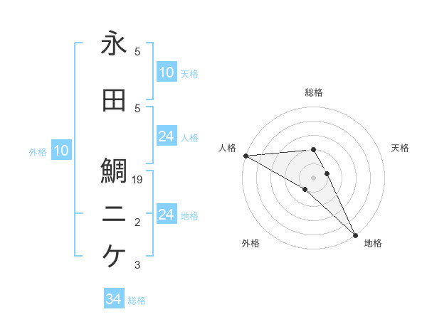永田 鯛ニケさんの地格は24画の5点!