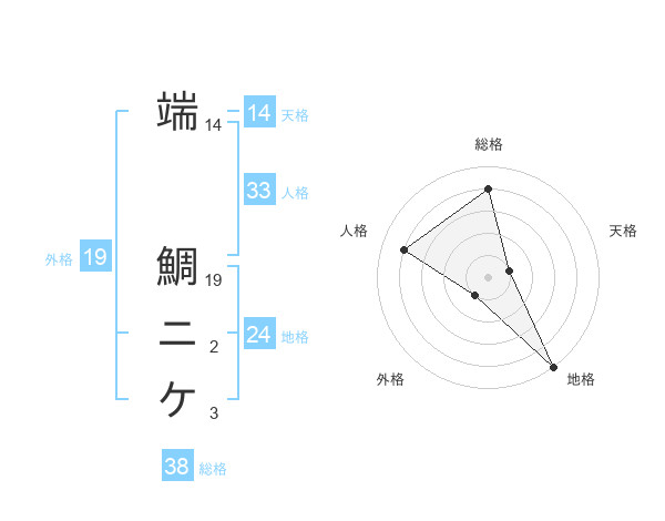 端 鯛ニケさんの総格は38画の4点!