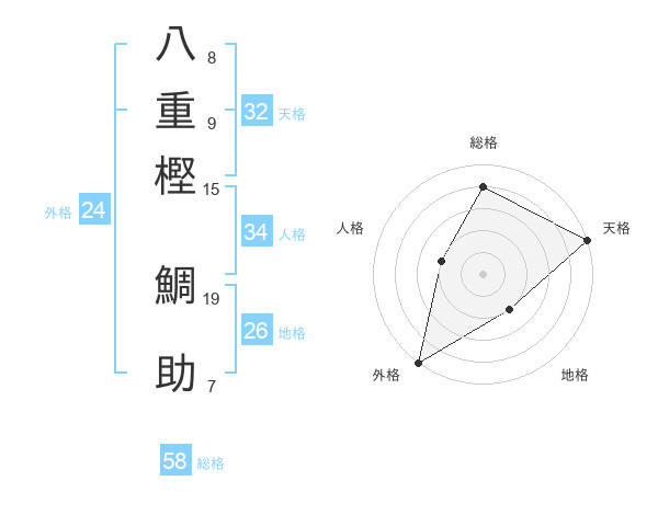 八重樫 鯛助さんの総格は58画の4点!