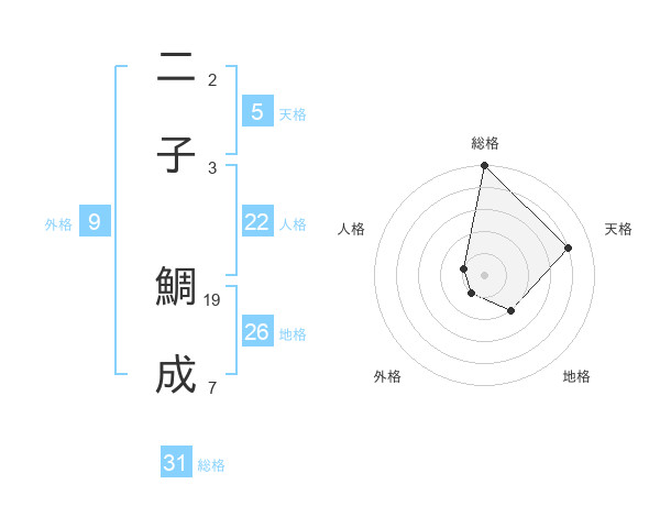 二子 鯛成さんの総格は31画の5点!