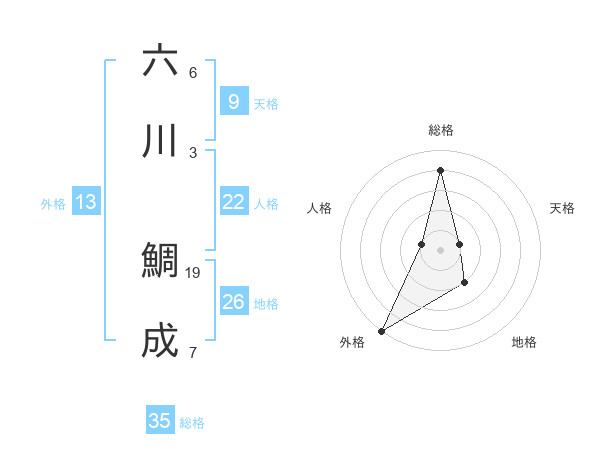 六川 鯛成さんの総格は35画の4点!
