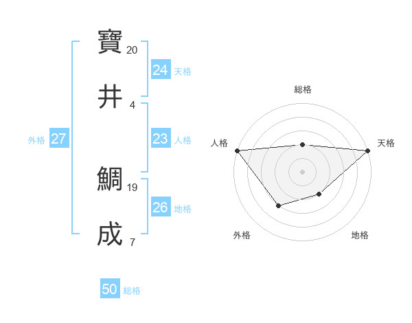 寶井 鯛成さんを姓名の画数から五運を鑑定