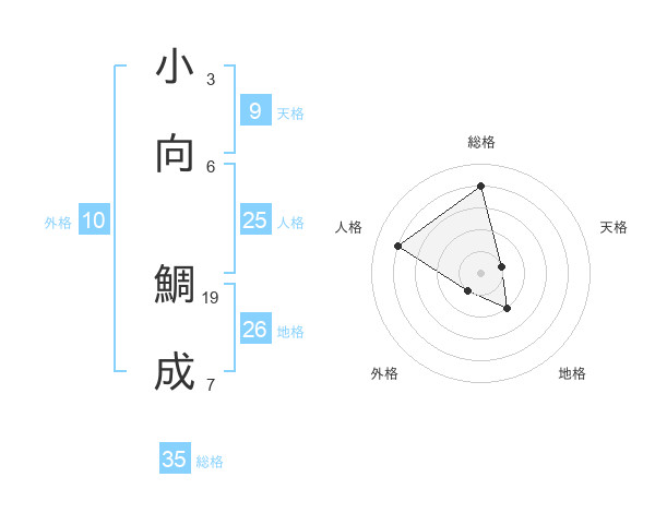 小向 鯛成さんの総格は35画の4点!