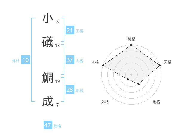 小礒 鯛成さんを姓名の画数から五運を鑑定