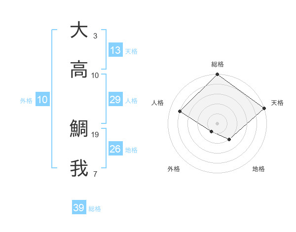 大高 鯛我さんの天格は13画の5点!