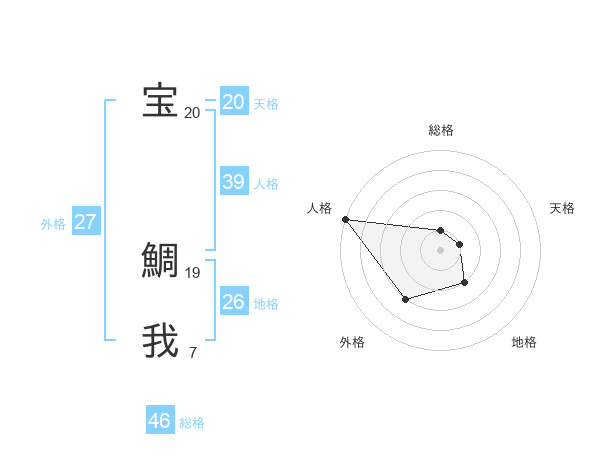 宝 鯛我さんの天格は20画の1点!