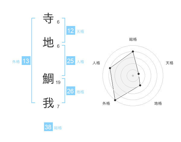 寺地 鯛我さんの天格は12画の1点!