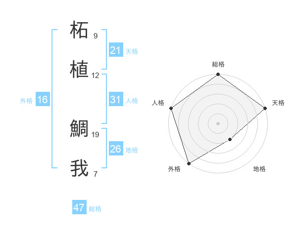 柘植 鯛我さんを姓名の画数から五運を鑑定