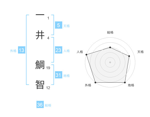 一井 鯛智さんの地格は31画の5点!