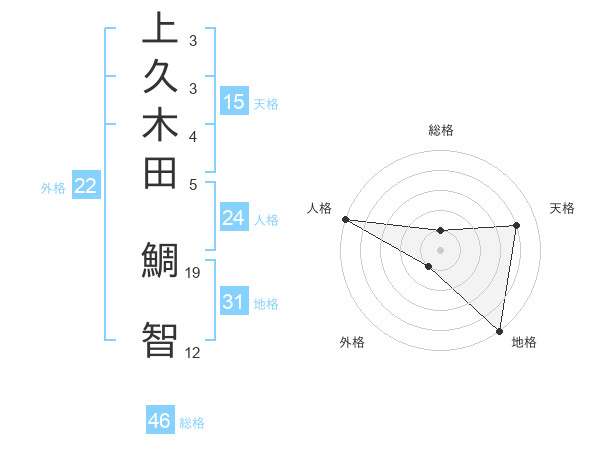 上久木田 鯛智さんの天格は15画の4点!