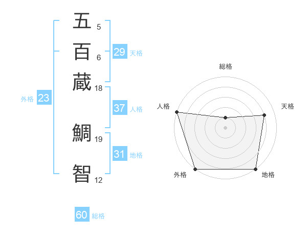 五百蔵 鯛智さんを姓名の画数から五運を鑑定