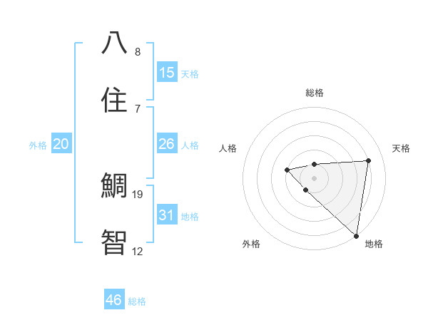 八住 鯛智さんを姓名の画数から五運を鑑定
