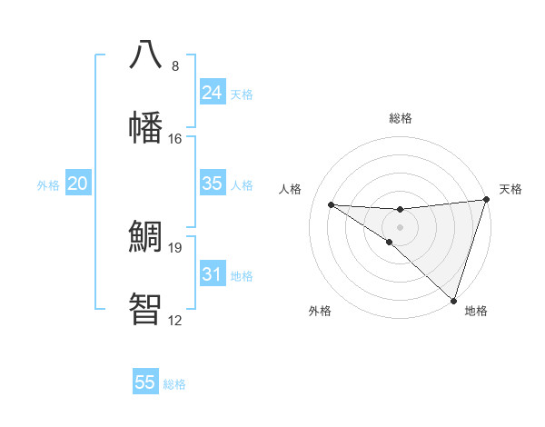 八幡 鯛智さんの総格は55画の1点!