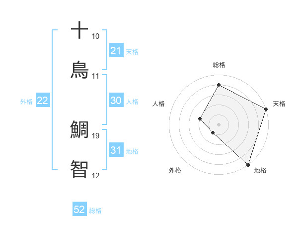 十鳥 鯛智さんを姓名の画数から五運を鑑定