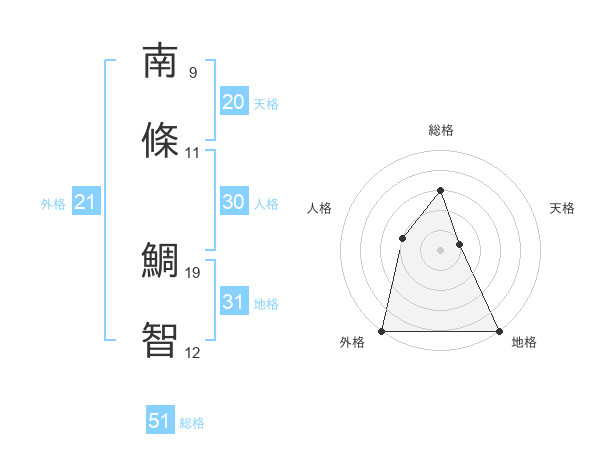 南條 鯛智さんの外格は21画の5点!