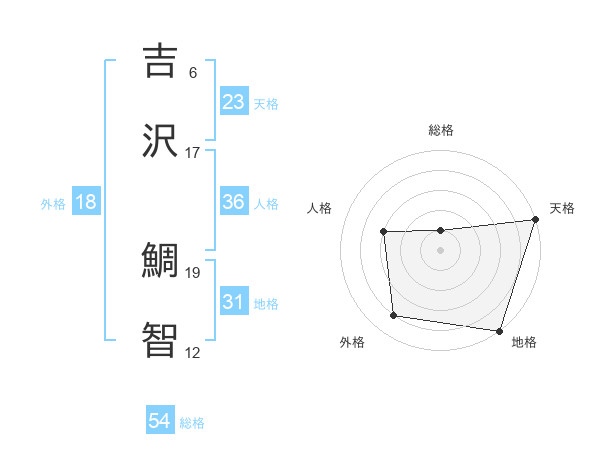 吉沢 鯛智さんの天格は23画の5点!