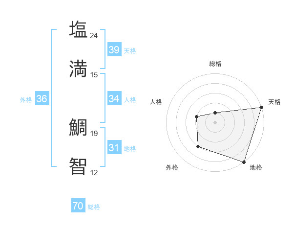 塩満 鯛智さんを姓名の画数から五運を鑑定