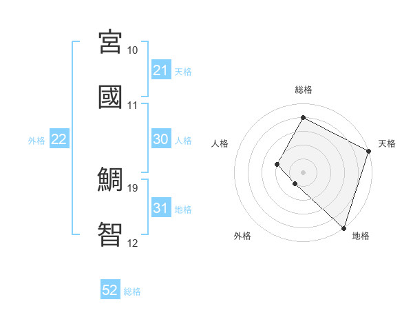 宮國 鯛智さんを姓名の画数から五運を鑑定