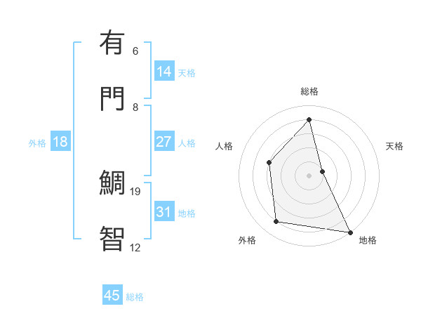 有門 鯛智さんを姓名の画数から五運を鑑定