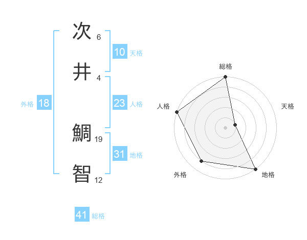 次井 鯛智さんの総格は41画の5点!