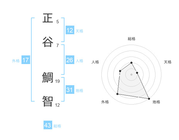 正谷 鯛智さんの総格は43画の2点!